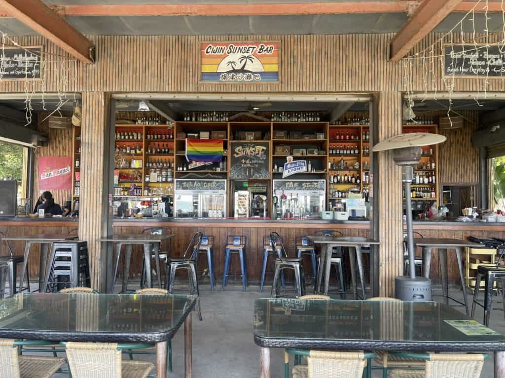 Near the beach is an area known as Cijin Sunset Beach, where several beachside bars and cafes have outdoor seating facing the ocean.