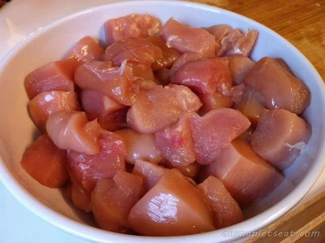 - 2 lbs boneless, skinless chicken breasts, cut into 1-inch pieces