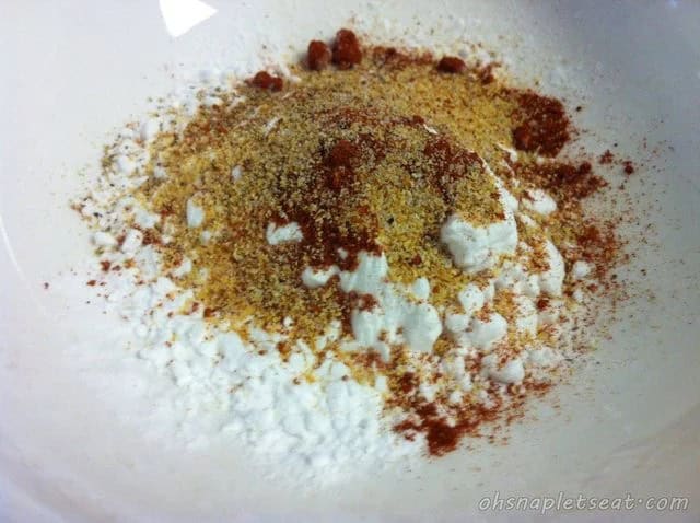 In a bowl, combine starch, paprika, cayenne, garlic powder, salt, and pepper.
