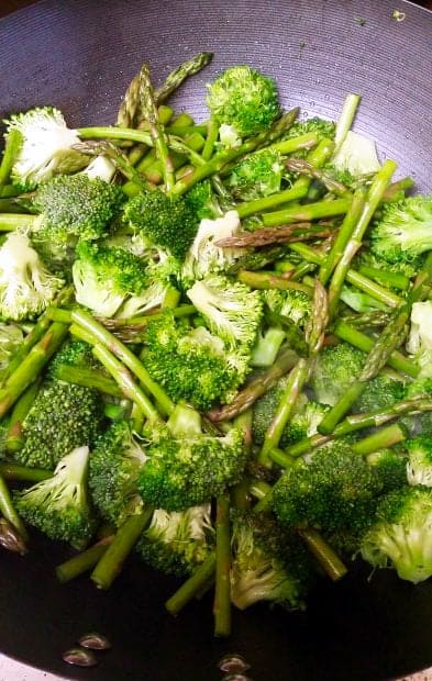 Mushrooms, asparagus, and broccoli give this dish great texture and balance. Feel free to swap in snow peas, bok choy, bell peppers, or zucchini depending on the season.