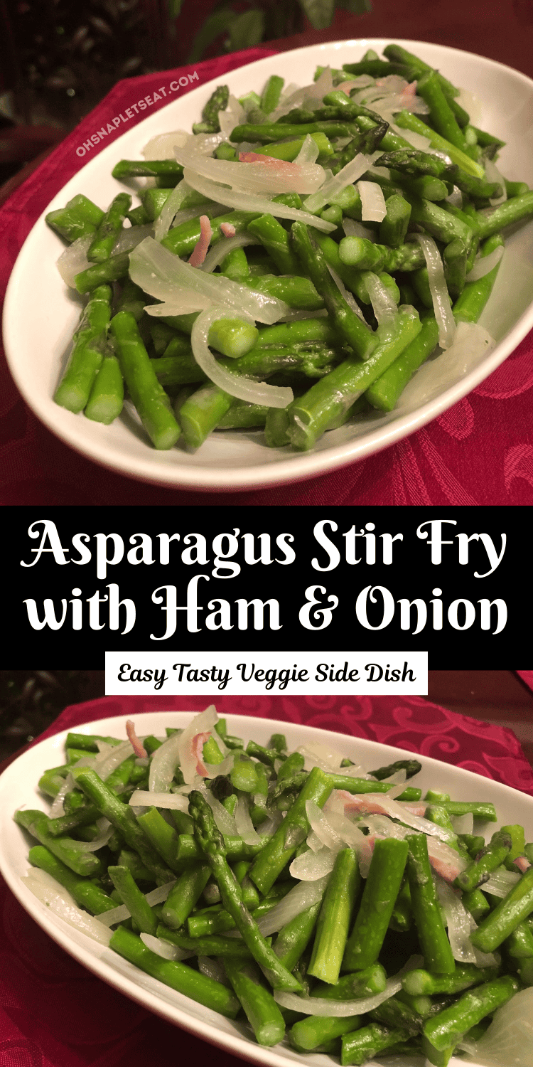 This Asparagus, Ham, and Onion Stir Fry is a classic, no-fuss vegetable side dish. Savory ham and sweet onions add just enough richness to complement the fresh asparagus, making it a tasty and satisfying addition to any meal - especially when you want something easy but still flavorful.