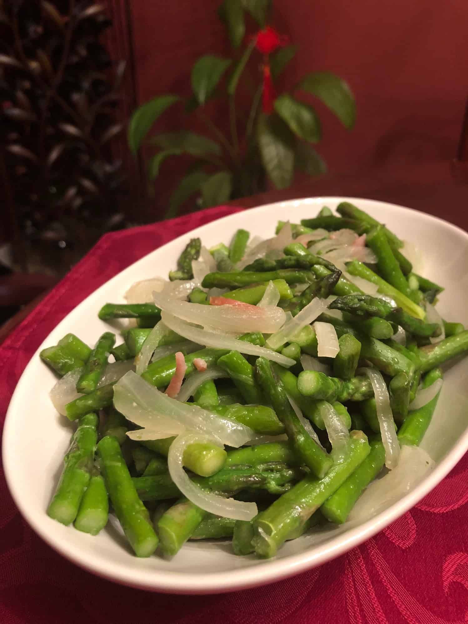 How to Stir Fry Asparagus, Ham, and Onion (Step by Step)