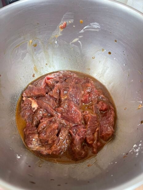 Marinate the beef: