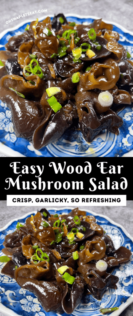 Wood ear mushroom salad is a Chinese cold dish or appetizer made with wood ear mushrooms, garlic, vinegar, soy sauce, and sesame oil. The salad is refreshing and dressed with a simple vinaigrette that brings out the flavor of the mushrooms.