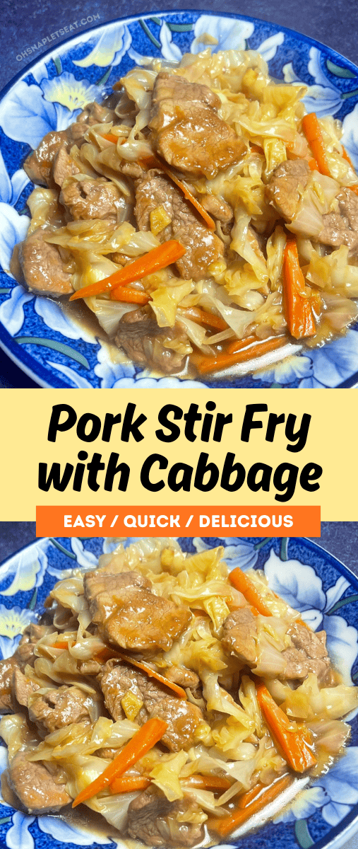 Switch up your regular weeknight dinner routine with this Pork Stir Fry with Cabbage! It is easy to make and delicious. Marinated sliced pork stir fried with ginger, carrots, and cabbage.