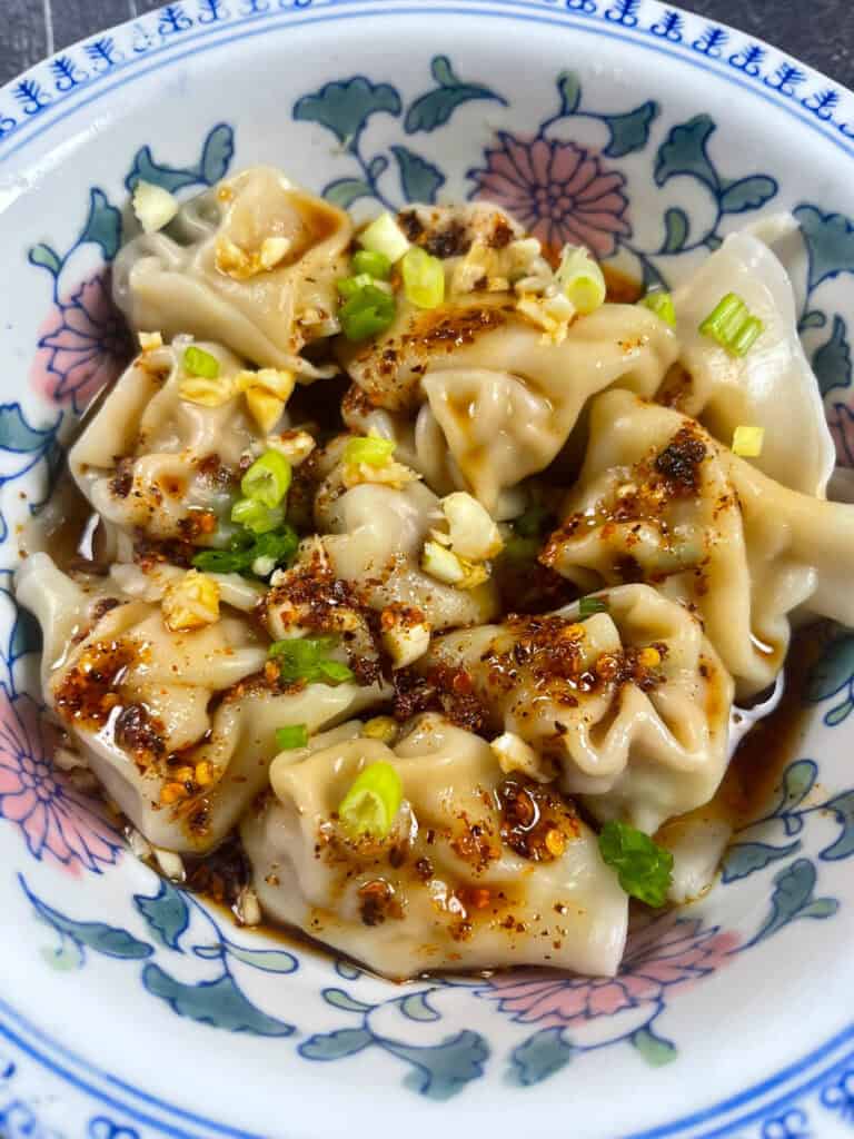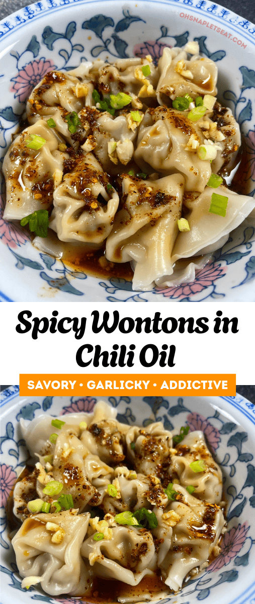 Spicy Wontons in Chili Oil is my favorite way to eat wontons! Wontons served in a super flavorful sauce made of chili oil, garlic, sesame oil, soy sauce and more!