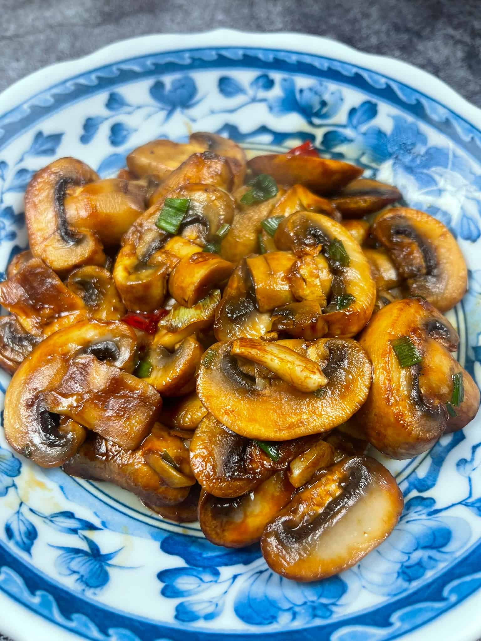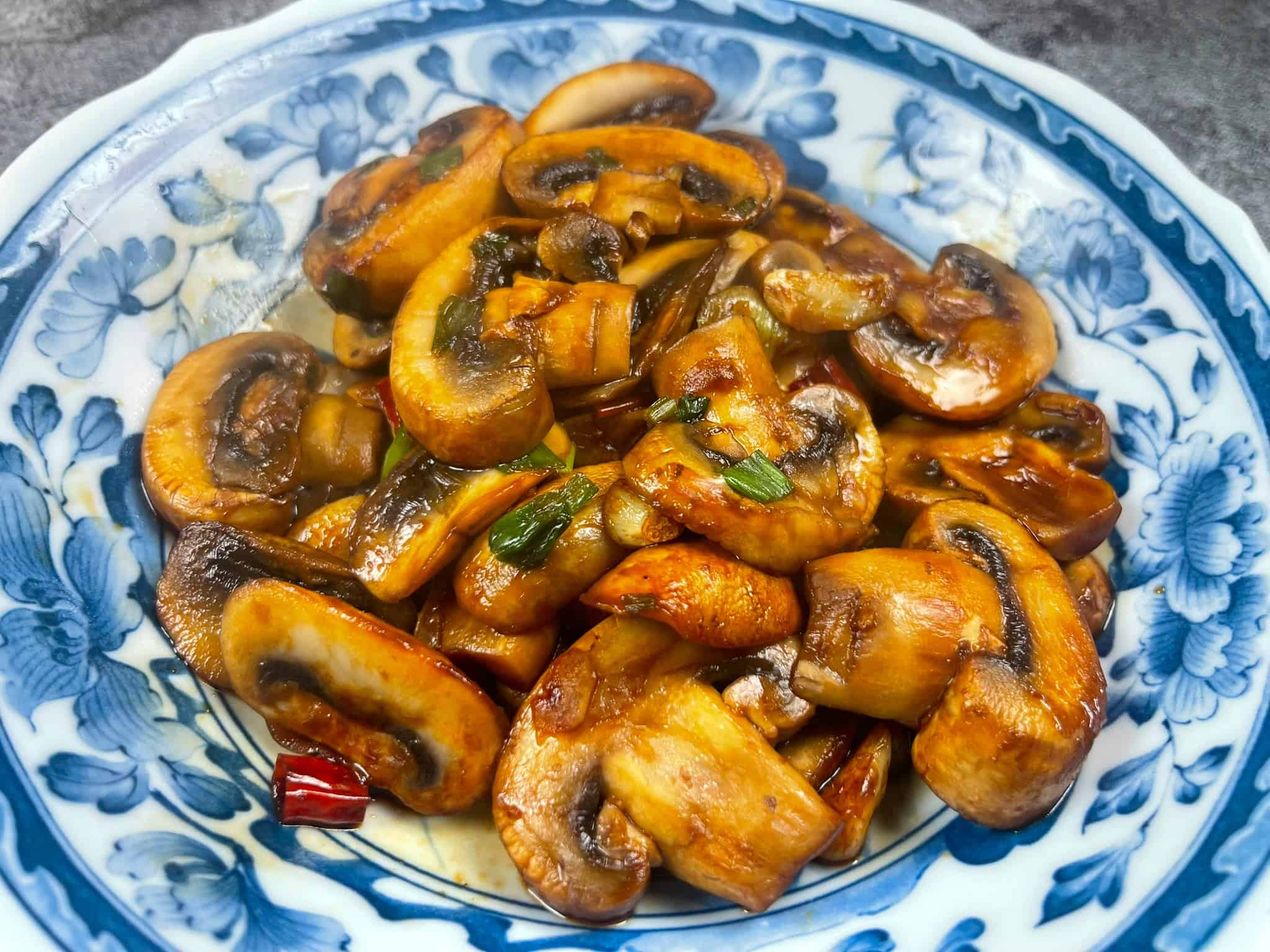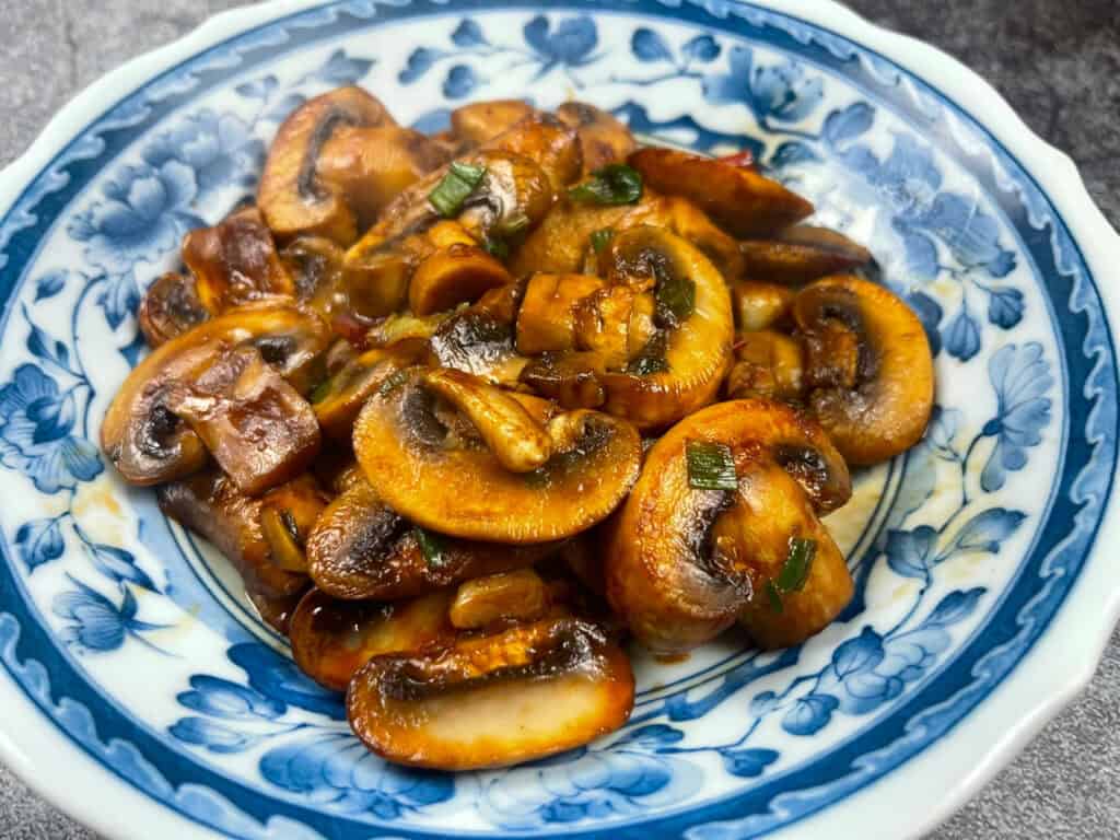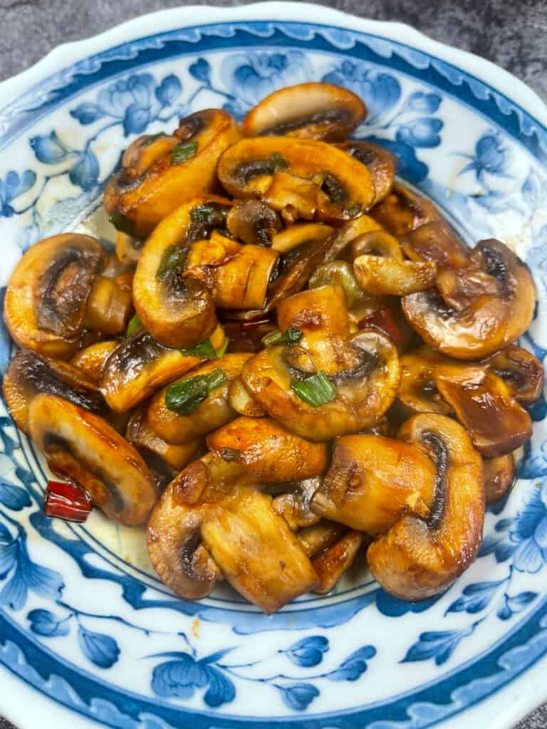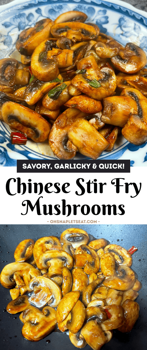 This quick and easy Chinese Stir Fried Mushrooms comes together in under 15 minutes. Mushrooms are stir fried with garlic and chili, then finished with your choice of sauce — oyster for glossy and savory, soy for a lighter flavor, or no sauce for simple garlic mushrooms. A versatile side dish that pairs with rice, noodles, or any Chinese meal.