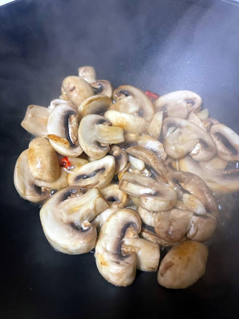 Cook mushrooms: Add mushrooms and stir fry for about 5 minutes until they begin to soften and release liquid.
