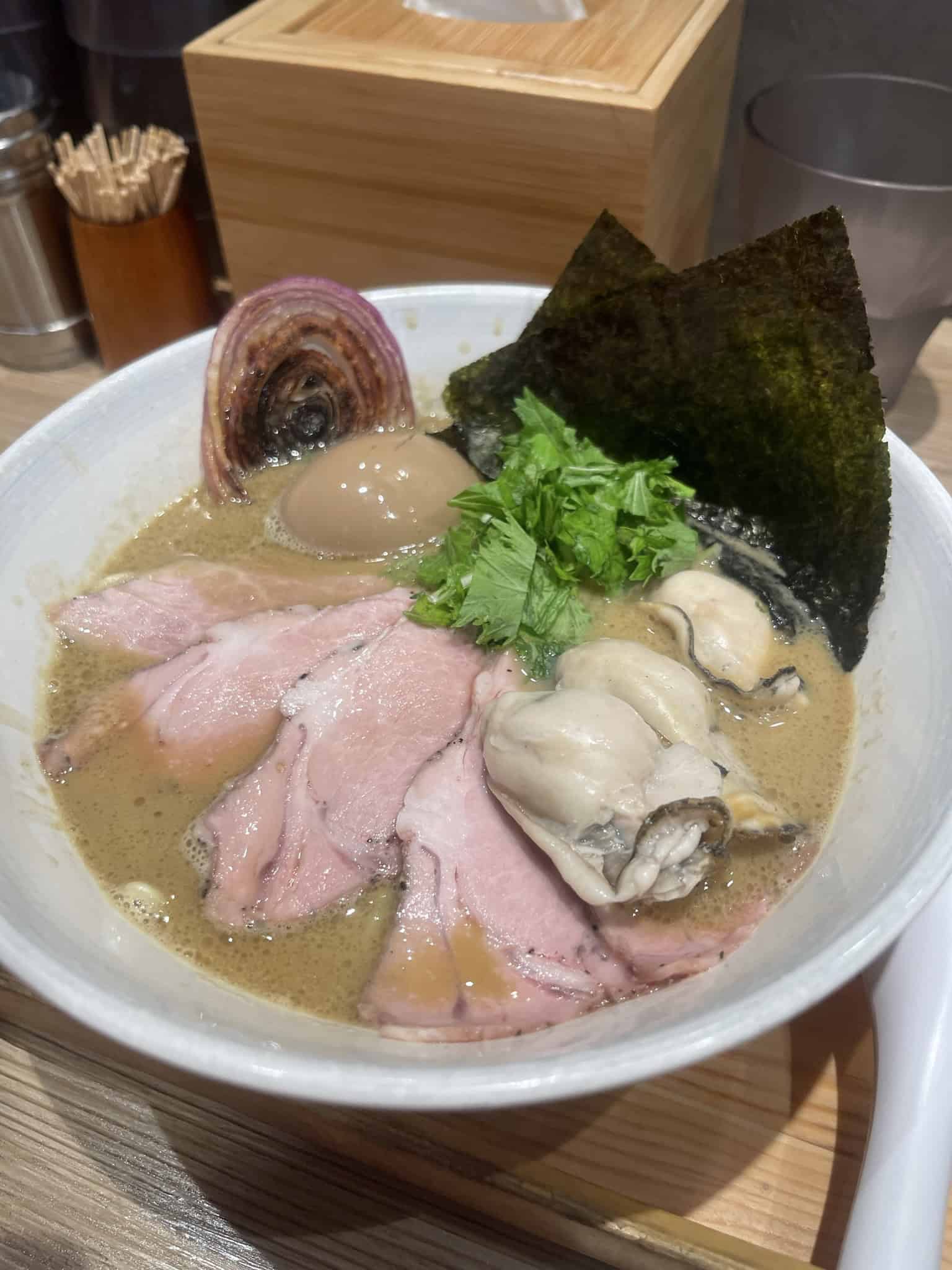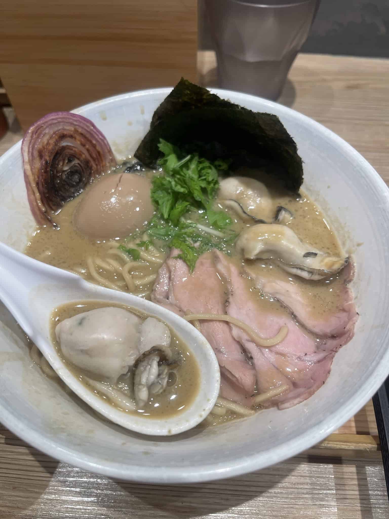 I've had a lot of ramen over the years, but this one was unforgettable. The combination of massive oysters, rich yet balanced broth, and the intimate counter-style setting made it a truly special meal.