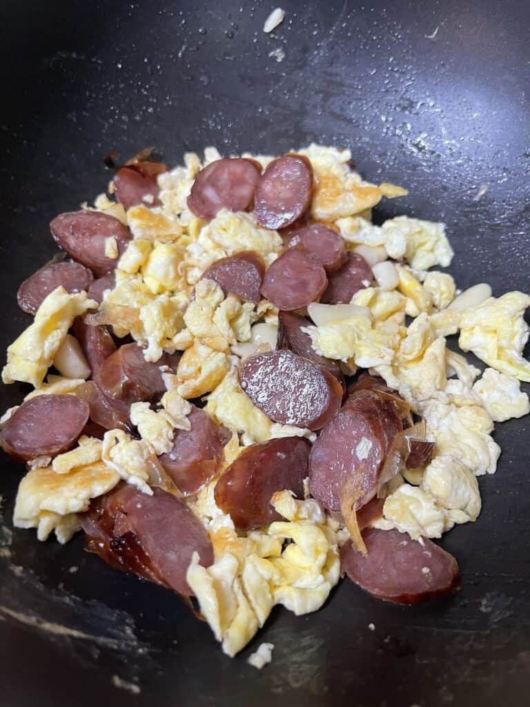 - Pre-cooked sausage: If you’re starting with pre-cooked Taiwanese sausage (like leftovers), just slice diagonally and pan-fry briefly in a little oil until fragrant before adding it back in.