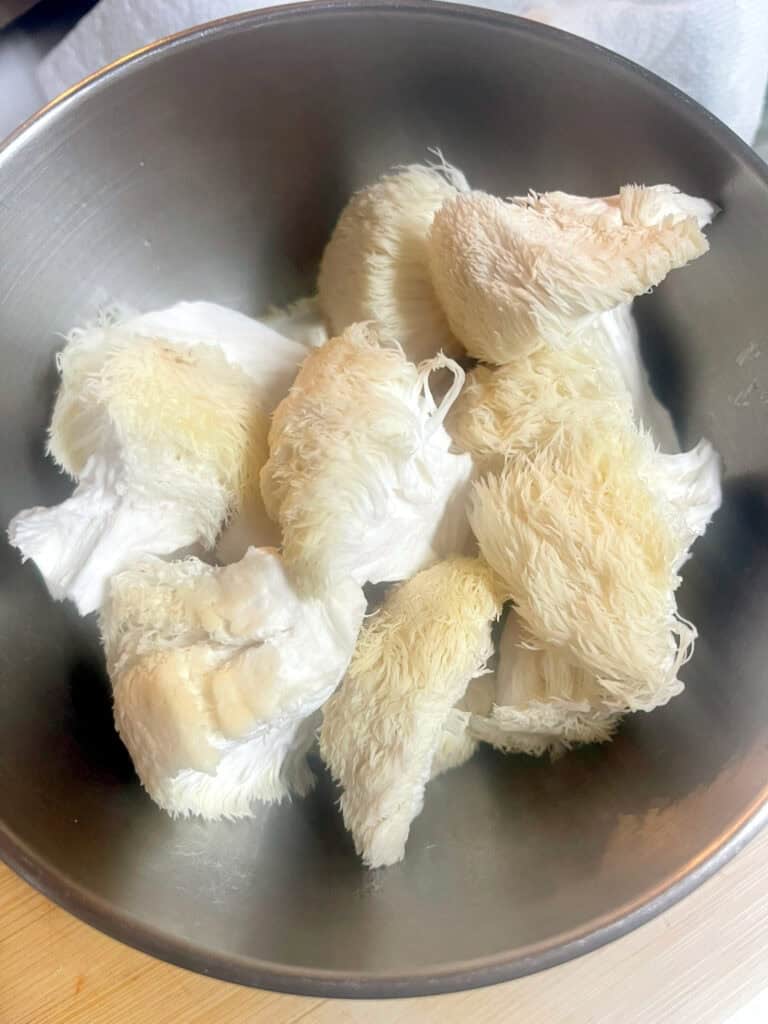 - 8 oz Lion’s Mane mushrooms (猴頭菇), torn into bite-sized pieces