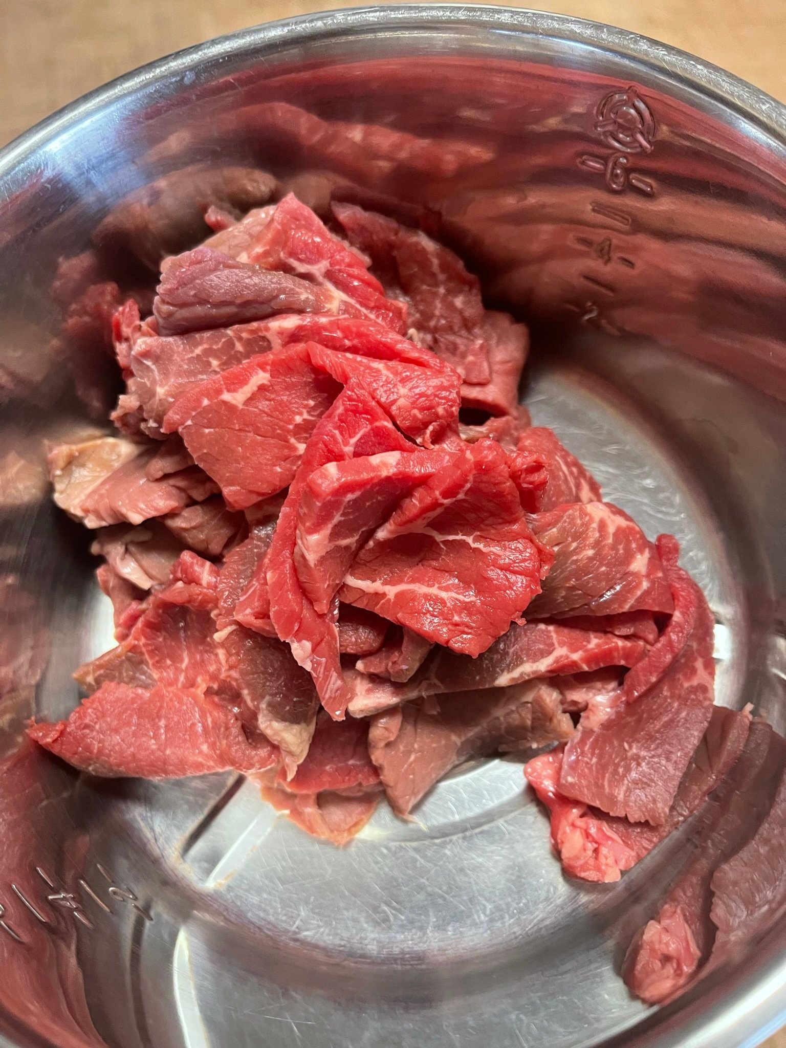 - Slice beef thinly against the grain (about ⅛ inch thick). You can also cut into smaller strips if preferred.