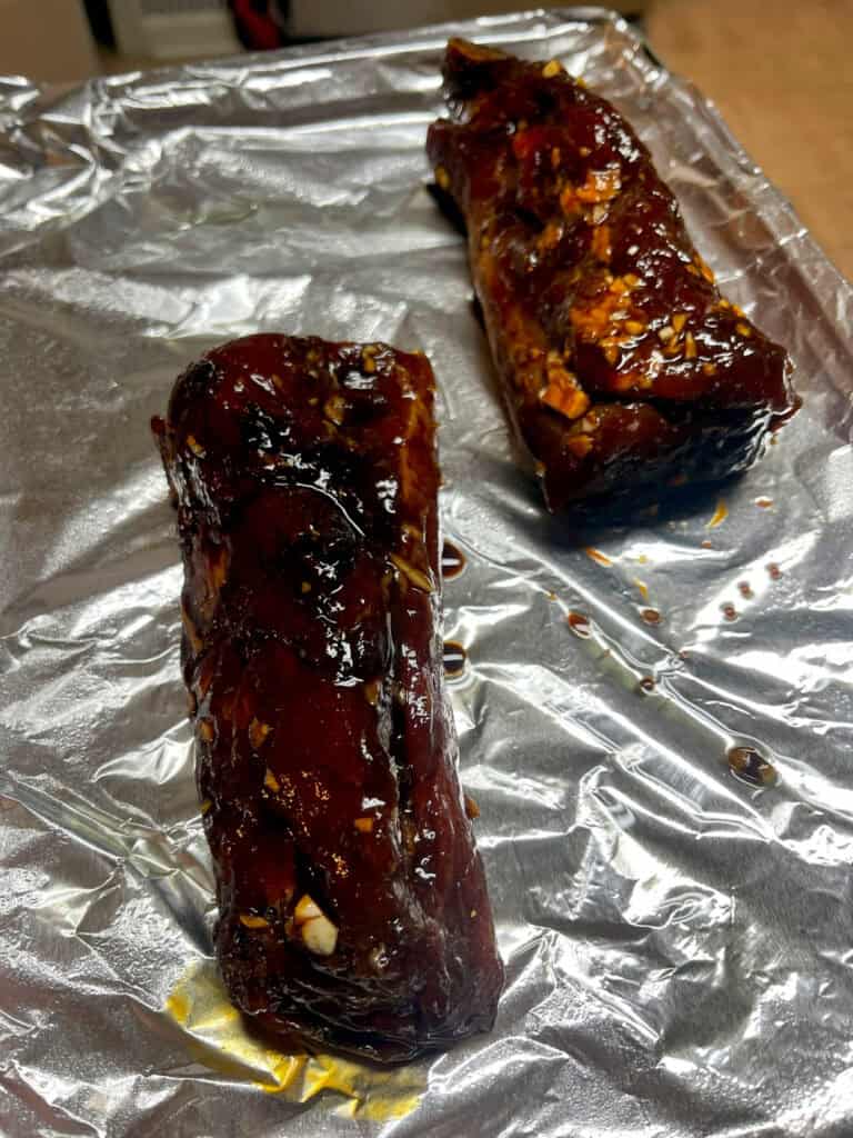 - If you prefer a glazed finish, you can reserve some marinade before adding it to the pork and brush it on halfway through cooking but it’s optional.