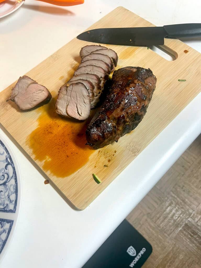 Pork tenderloin overcooks easily. For best results, pull it from the oven at 140-145°F, let it rest before slicing, and reheat gently.
