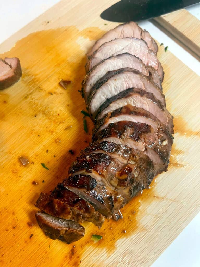 Let the pork rest for 5 minutes, then slice thinly against the grain.