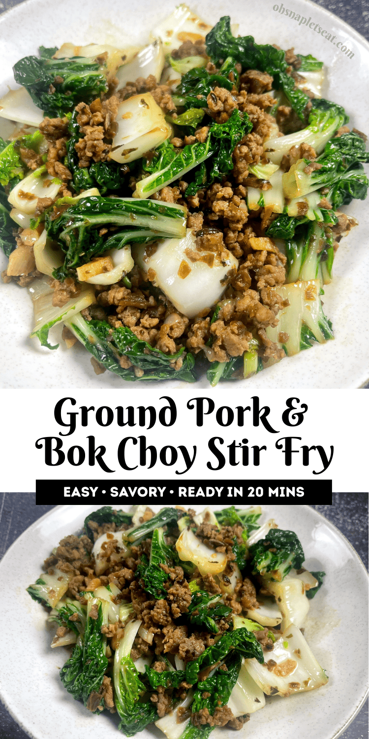 This ground pork and bok choy stir fry is a simple, satisfying dish that comes together quickly and works perfectly over rice. The pork is cooked separately for deep, savory flavor, then tossed with crisp-tender bok choy at the end. Chili oil is optional, and it's also a great way to use up seasoned ground pork you may already have on hand!