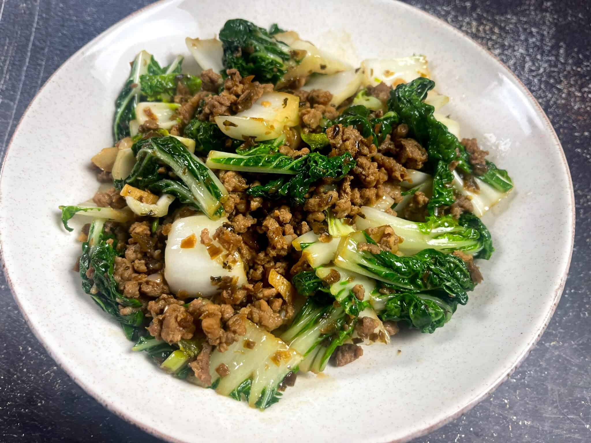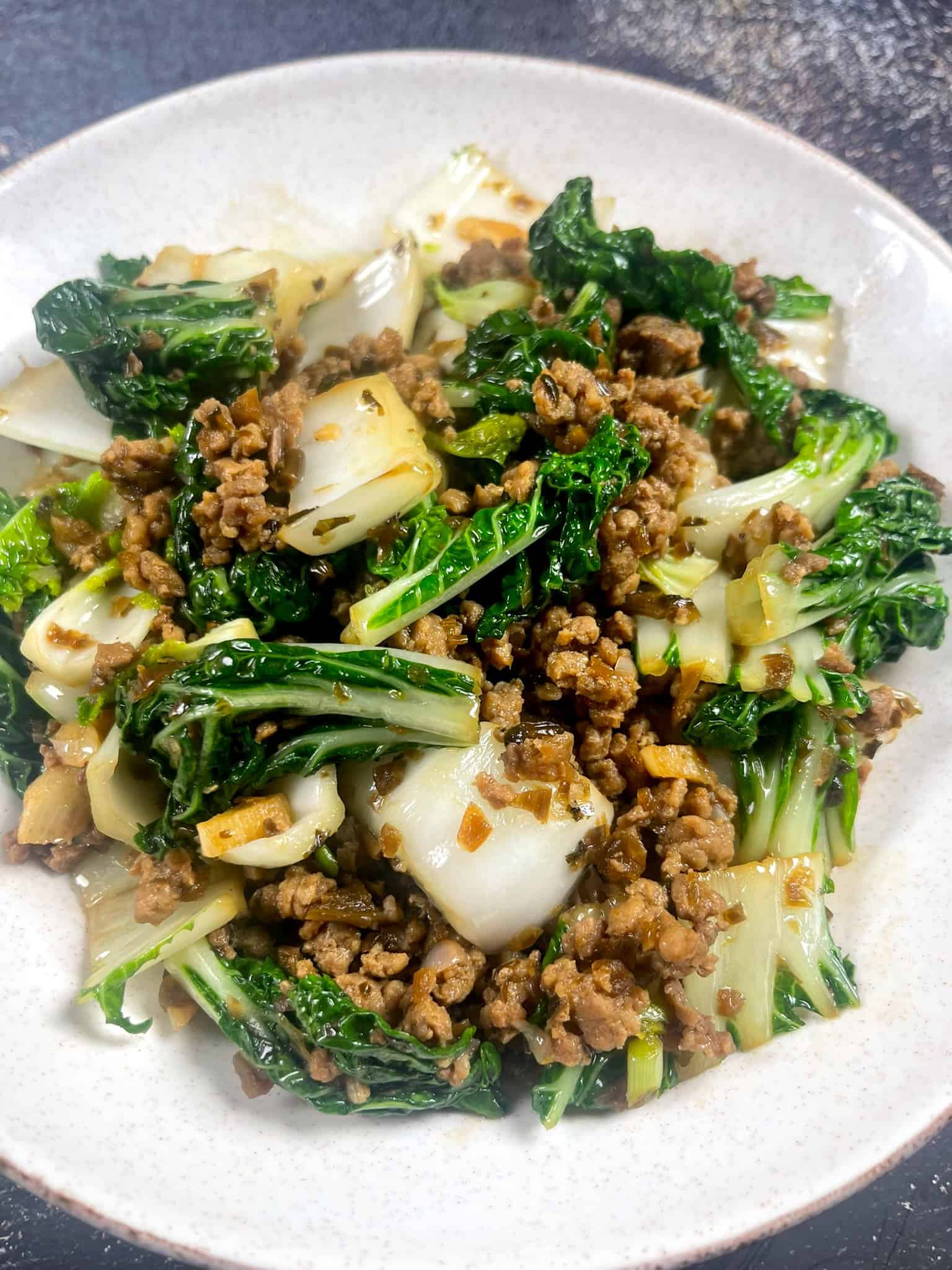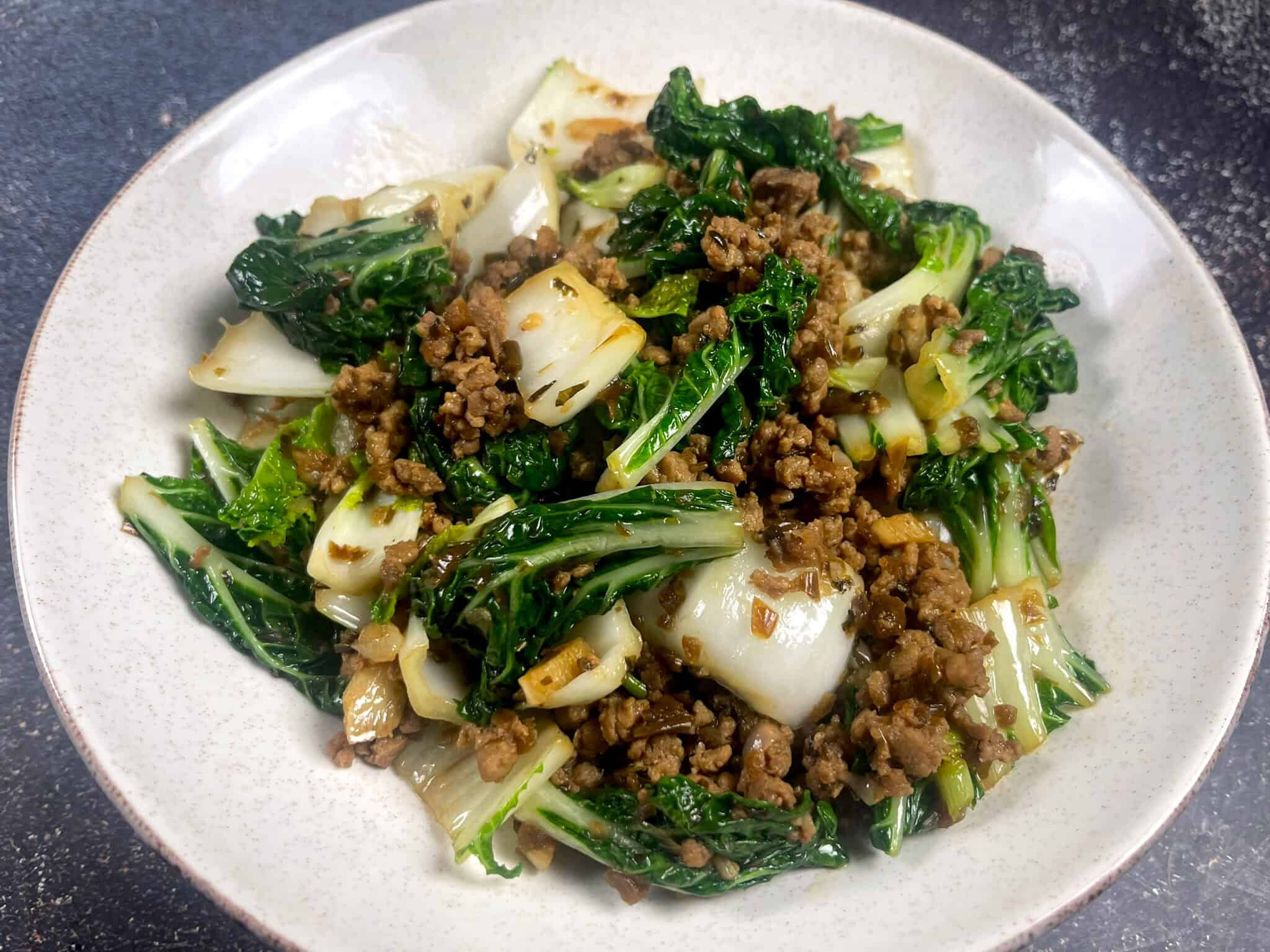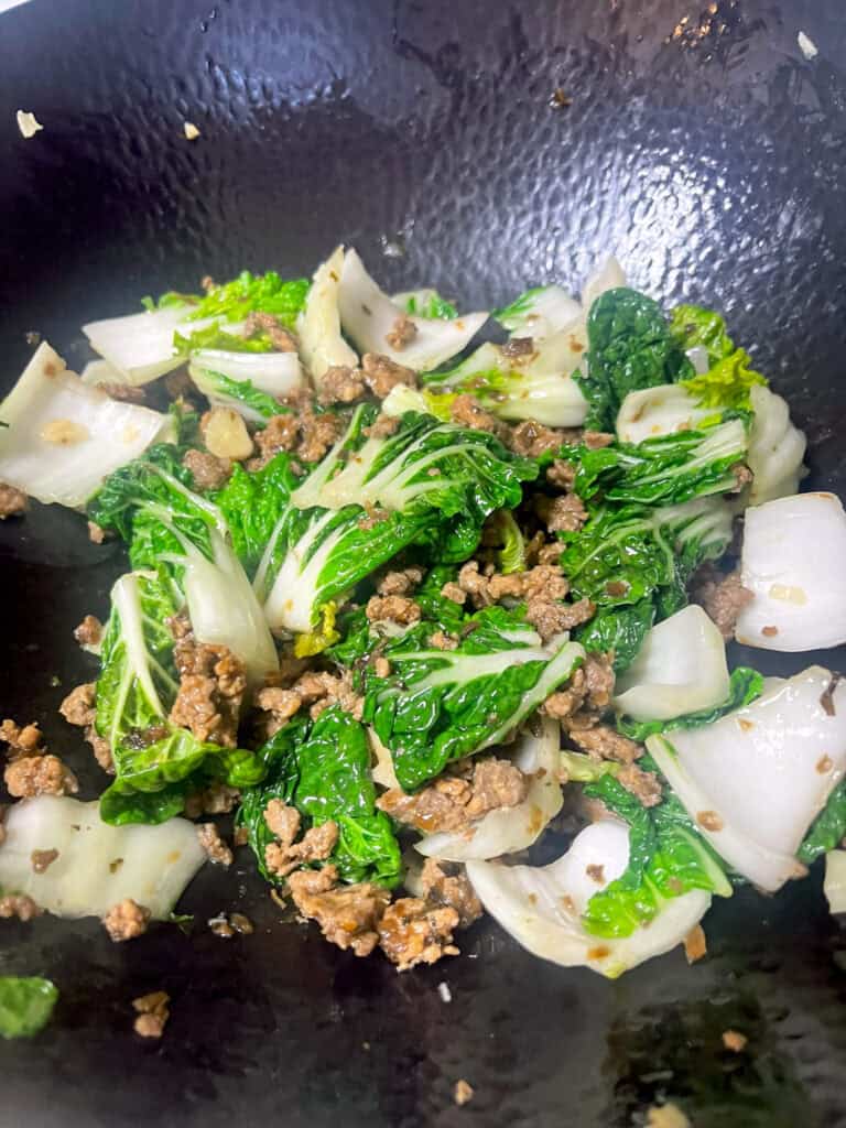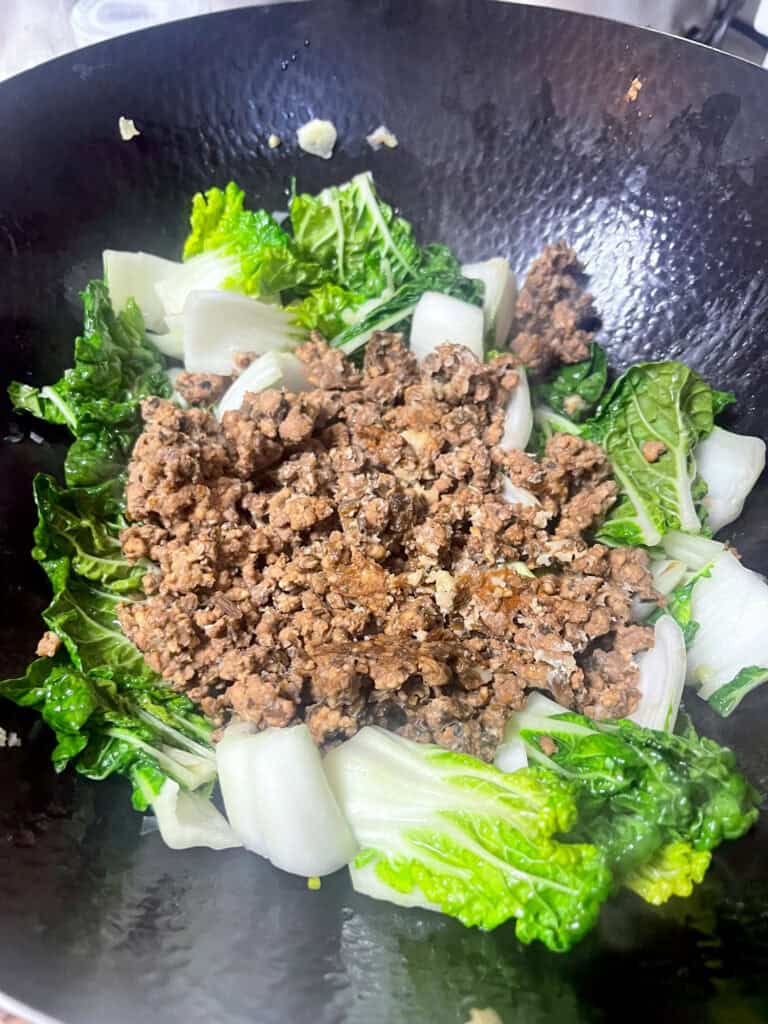 - Using pre-seasoned ground pork: This recipe works well with freshly cooked ground pork or already seasoned pork. If using pre-cooked pork, simply reheat it before adding it back to the bok choy.