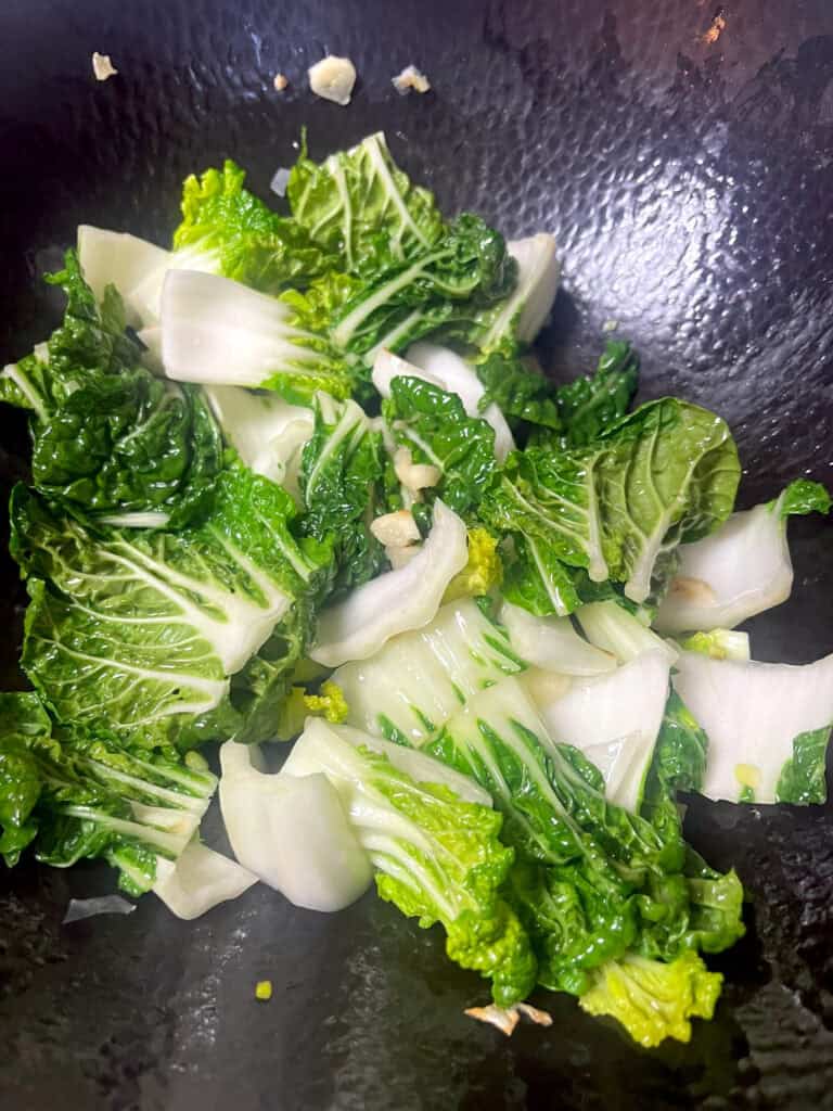 Stir fry the bok choy