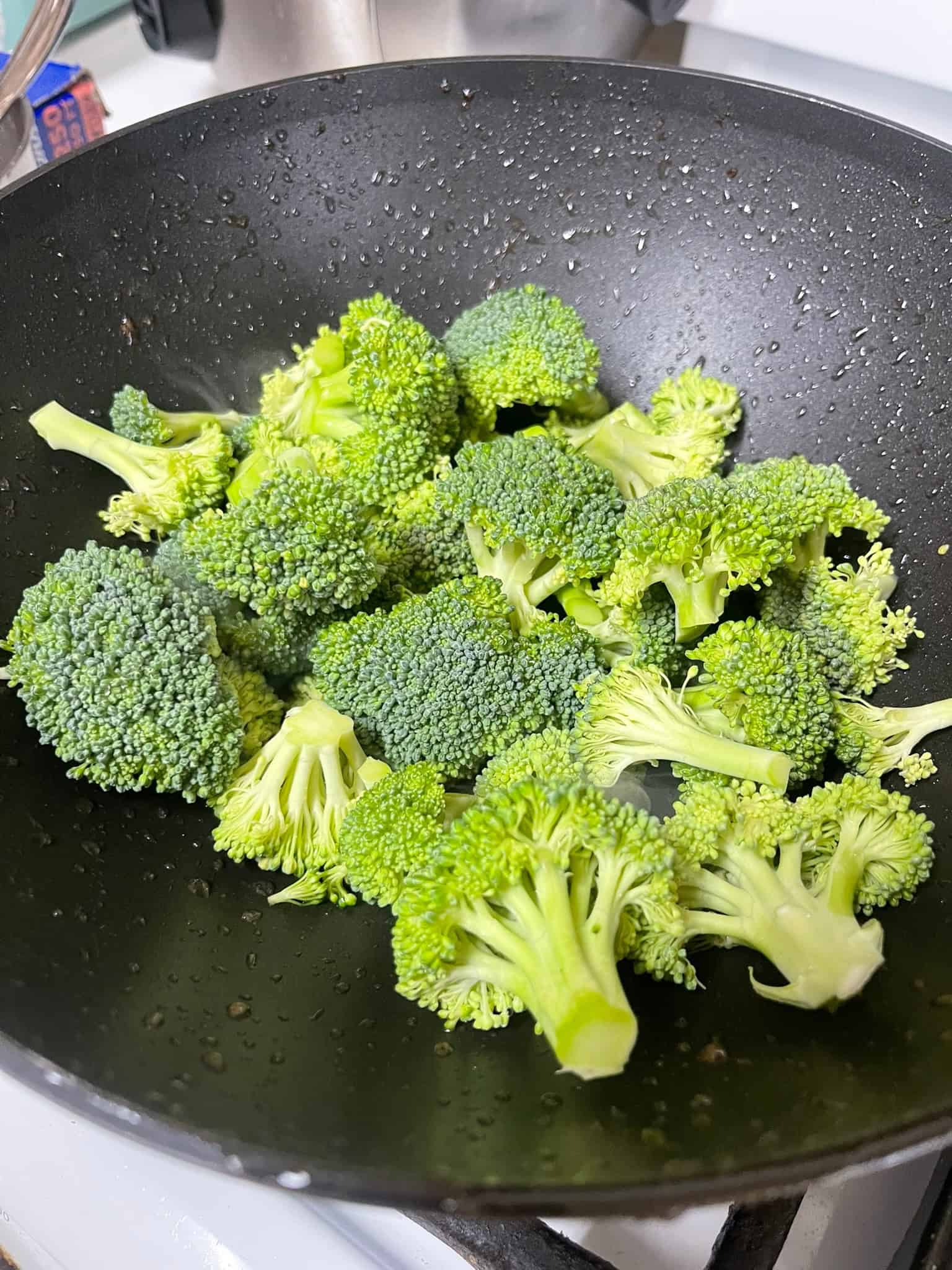 Stir fry broccoli with a splash of water or chicken broth until tender-crisp.