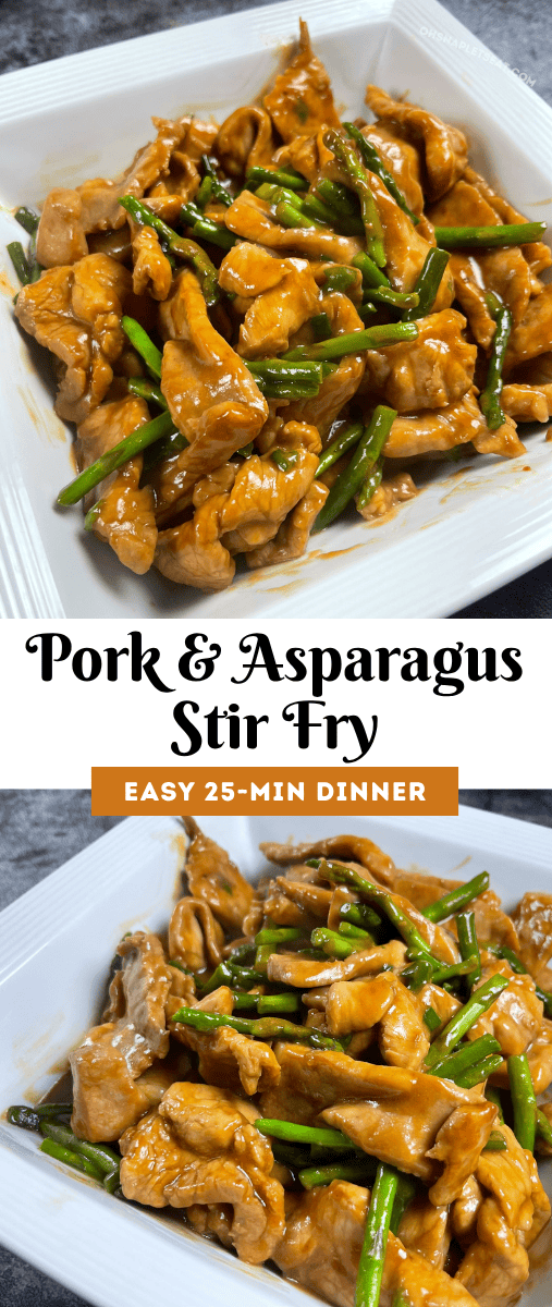 This Pork and Asparagus Stir Fry is a quick and flavorful weeknight meal made with tender slices of pork, crisp asparagus, and plenty of garlic. Everything is tossed in a simple savory sauce that comes together in under 30 minutes - perfect for an easy, satisfying dinner.