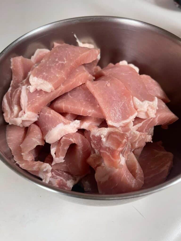 - 1 lb pork, thinly sliced (about 3-4 cups sliced; pork loin, shoulder, or belly)