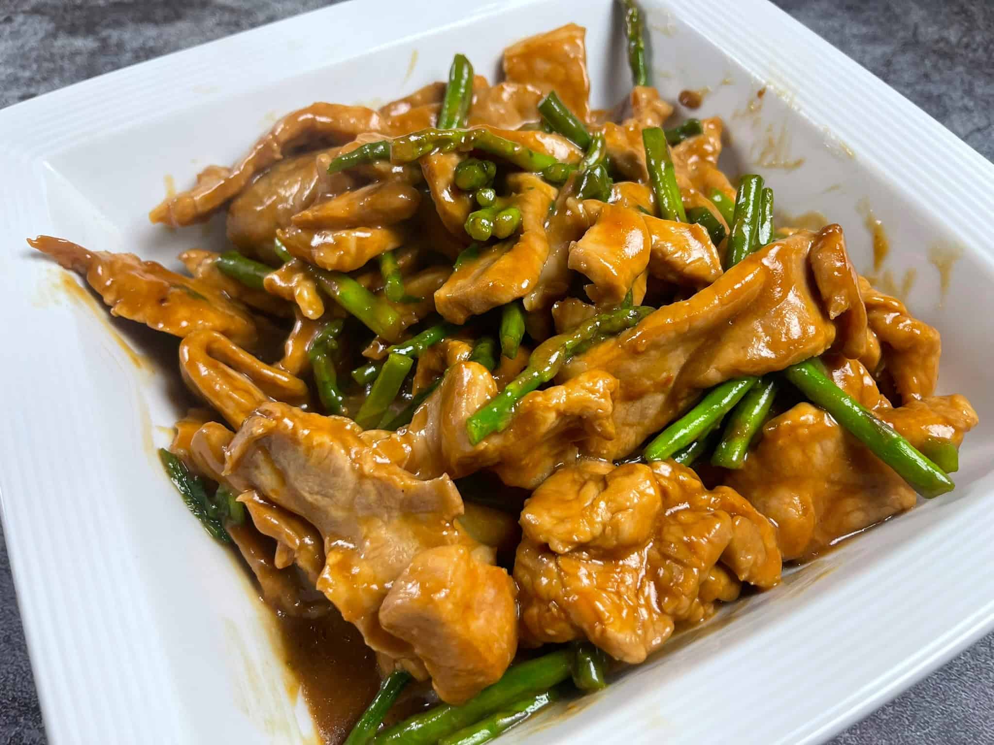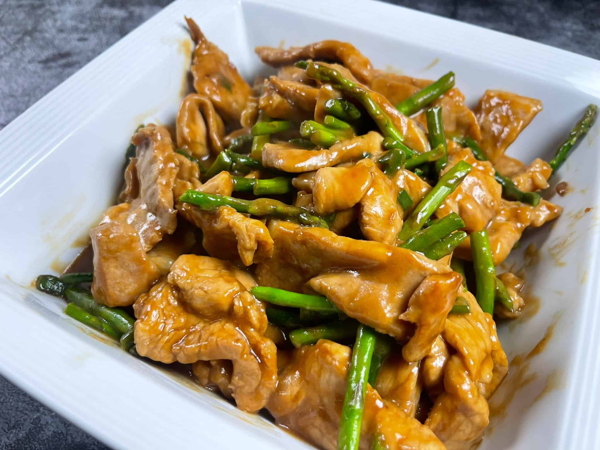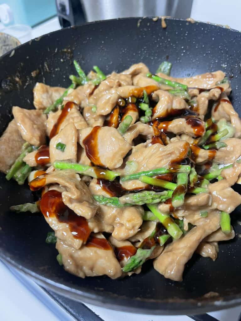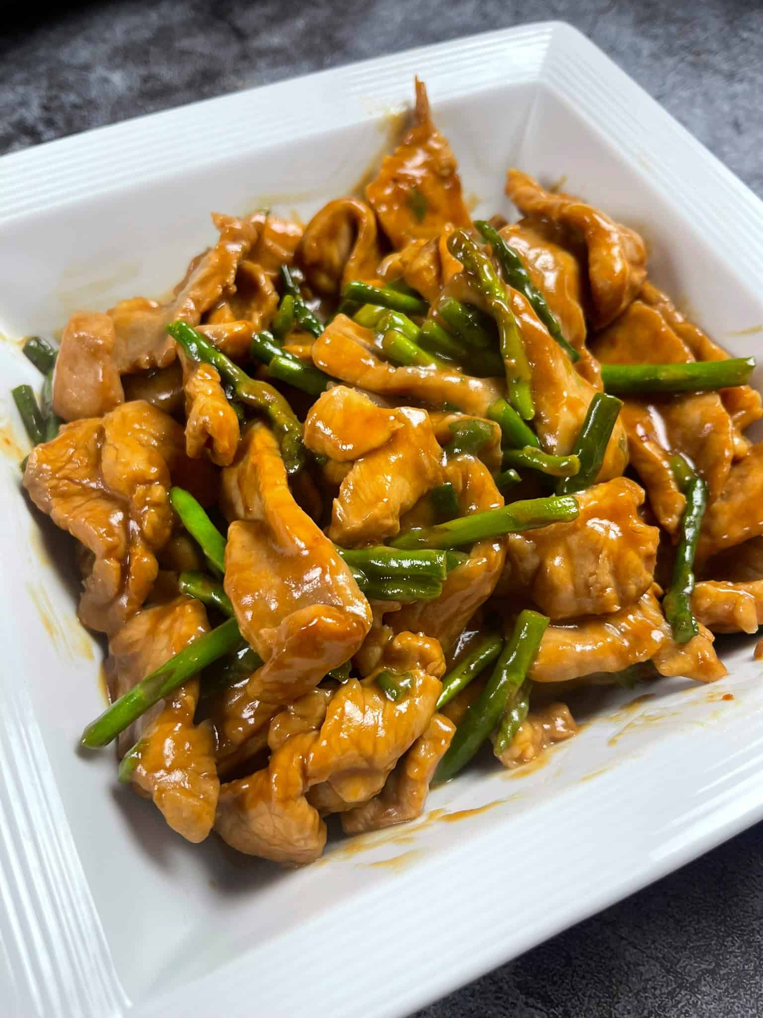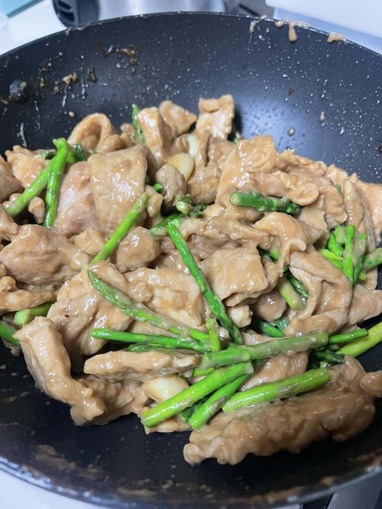 It's a great way to use fresh asparagus and pairs perfectly with rice or a light vegetable side like napa cabbage stir fry.