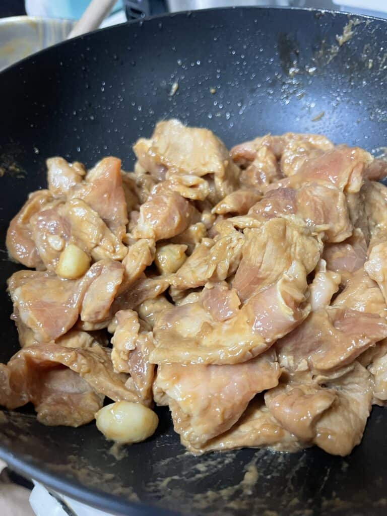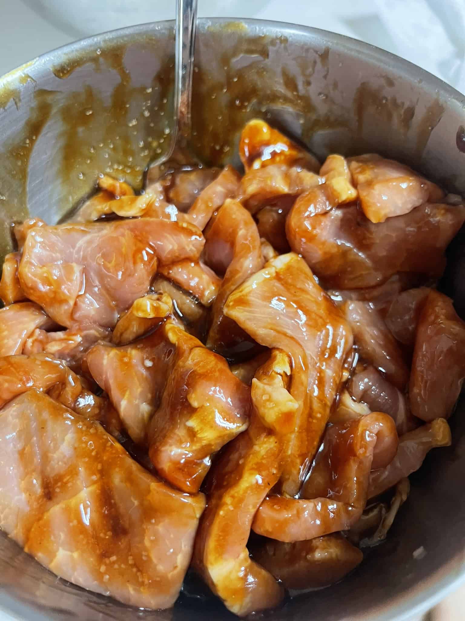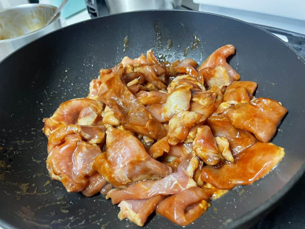 You can slice and marinate the pork ahead of time, but for best texture, cook the dish fresh.