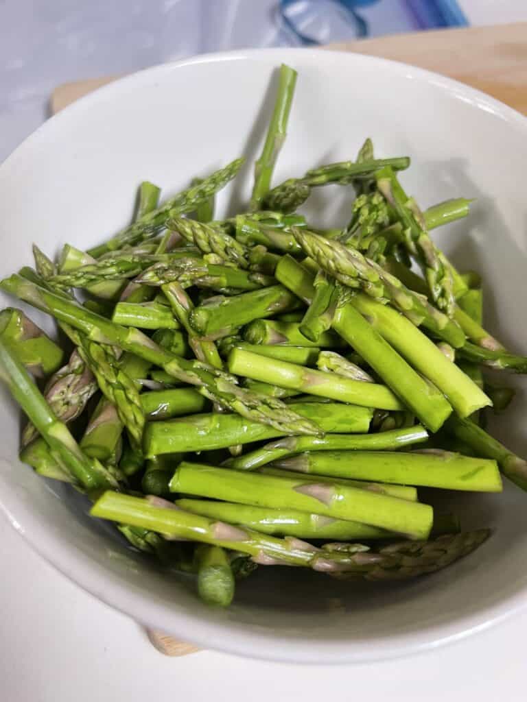 - 1 bunch asparagus (about 10-12 oz), trimmed and cut into 2-inch pieces