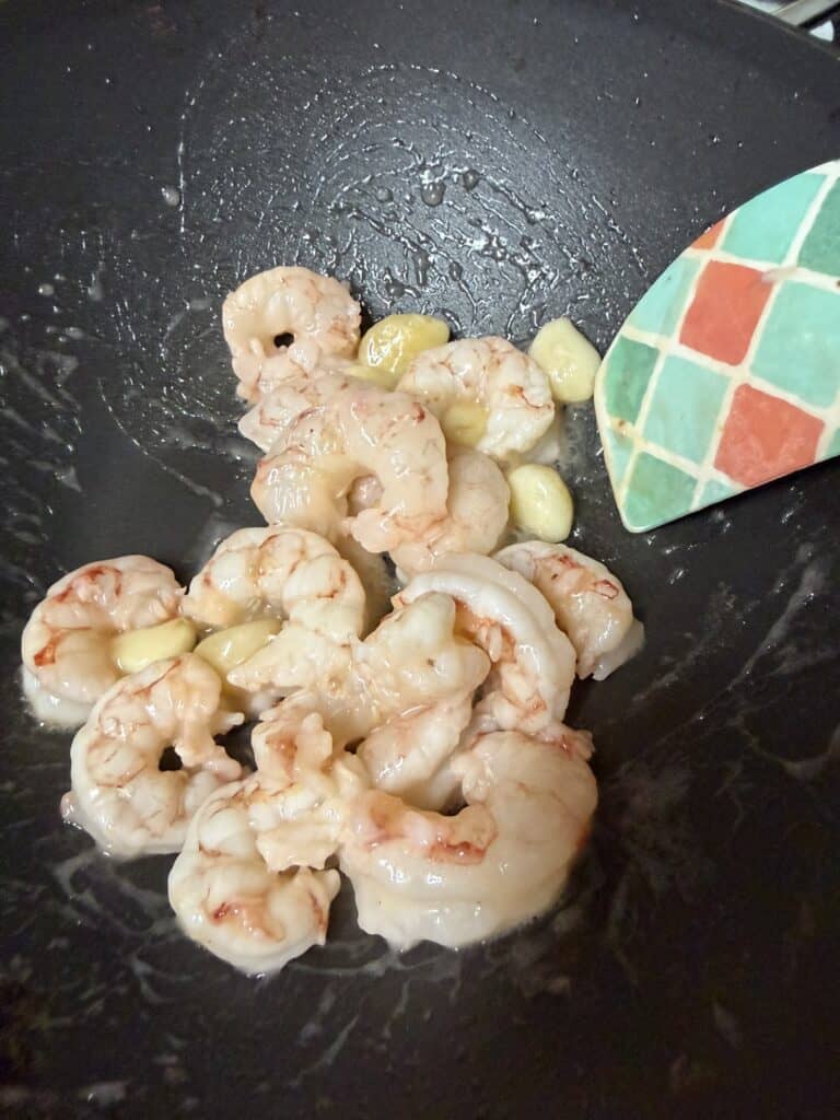 Add shrimp and stir fry until just cooked through. Remove from pan and set aside.